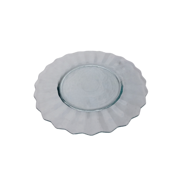 Este plato de presentación de 34 cm está elaborado con cristal reciclado, ofreciendo una opción ecológica sin renunciar al estilo.