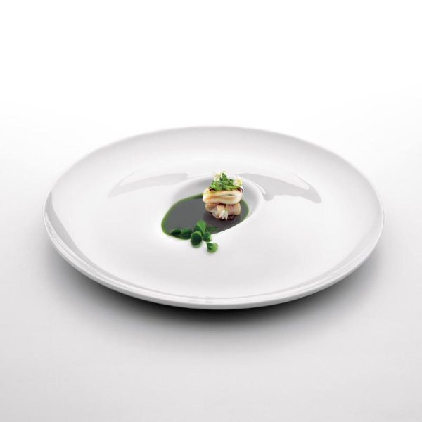 Plato presentación blanco modelo eclipse O! luna, de porcelana fina de gran calidad.