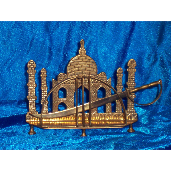 Portanotas abrecartas de metal dorado.