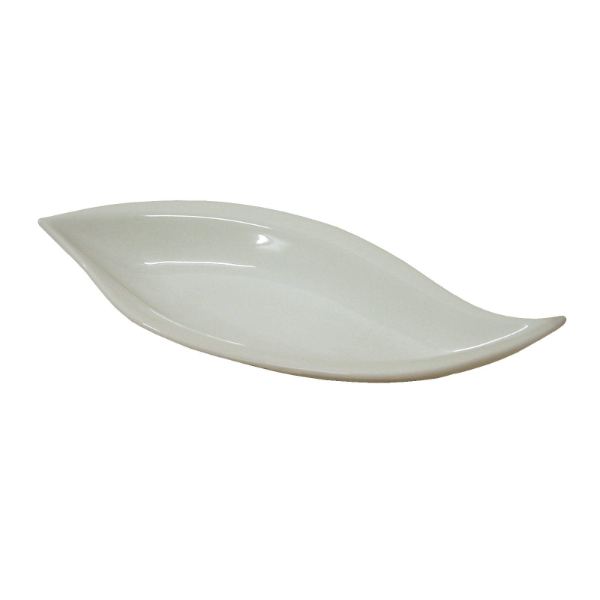 Rabanera de porcelana blanca con forma de hoja.