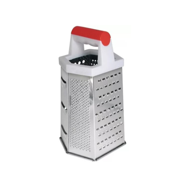 Rallador de acero inxo 6 pasos diferentes de rallador, estilos de corte y agarre cómodo.