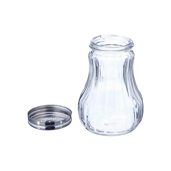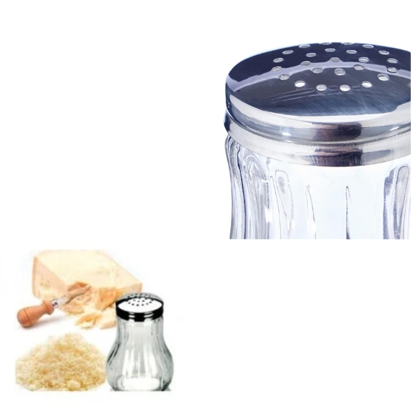 Salero – Dispensador De Queso de vidrio transparente y tapa Inoxidable 18/10.