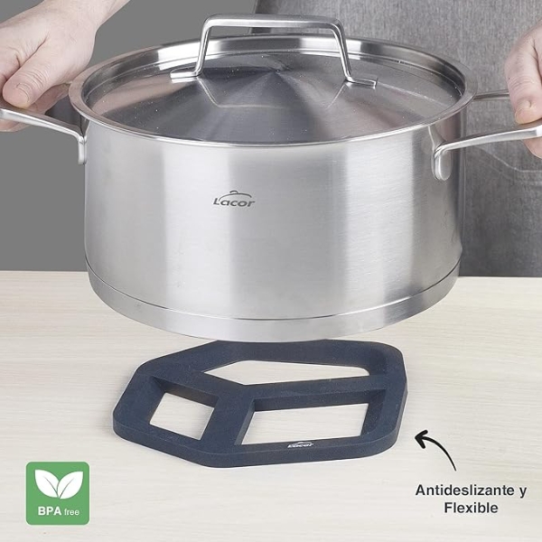 Fabricado con silicona de gran calidad que protege las superficies y encimeras de las fuentes de calor.