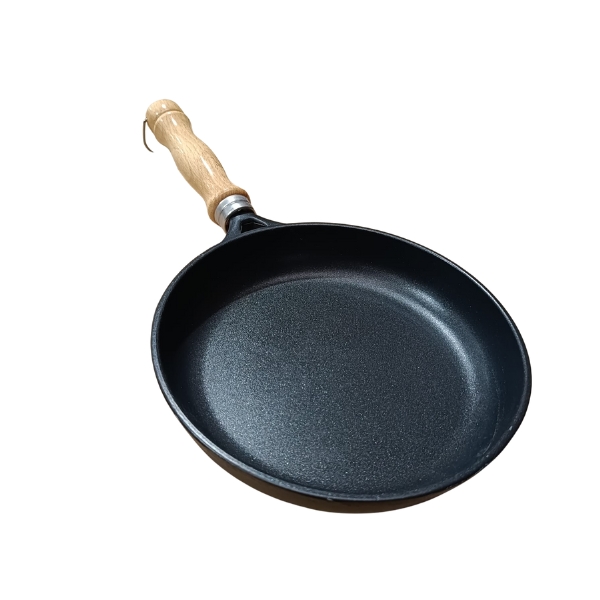 El mango de madera aporta un agarre seguro y cómodo, evitando el sobrecalentamiento y facilitando la manipulación durante la cocción.