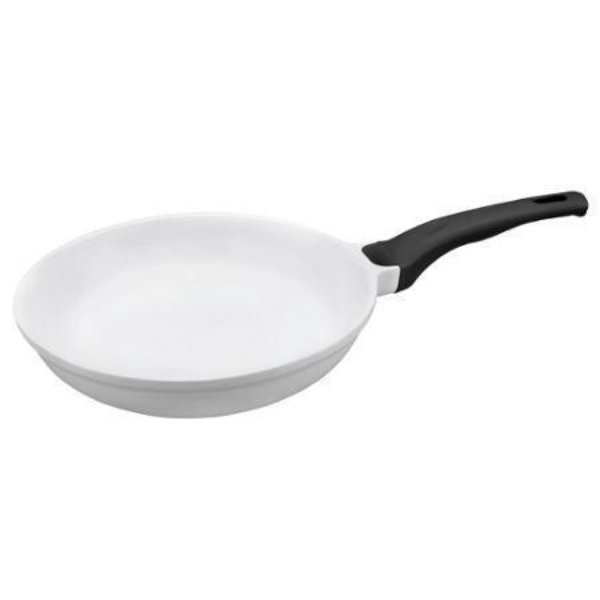 La sartén Aluminio Fundido White Ceram está fabricada en aluminio, material muy buen conductor del calor (calentamiento rápido y uniformemente repartido) y muy ligero (reduce el peso y facilita el manejo de los útiles de cocina).