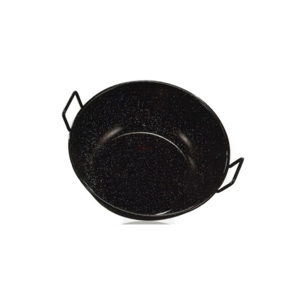 Sartén honda esmaltada con asas.