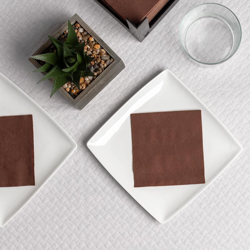 Servilletas de papel de color marrón chocolate cuyas medidas, plegados y colores son las que más se utilizan en hostelería, por lo que tengas el restaurante que tengas, podrás comprar la servilleta de papel de color que más combine con tu negocio y para el tipo de servicio que necesites