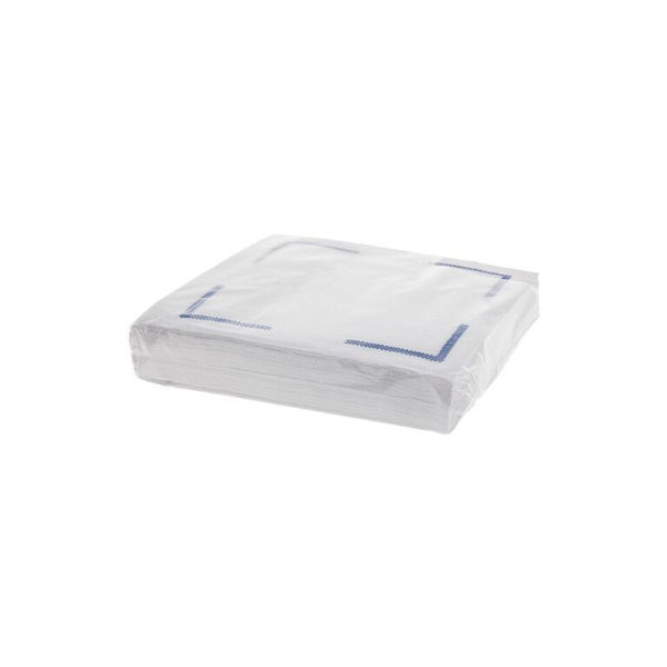 Servilleta plana de sulfito de 25 x 25cm, densa y de gran resistencia, impresa con orla de color.