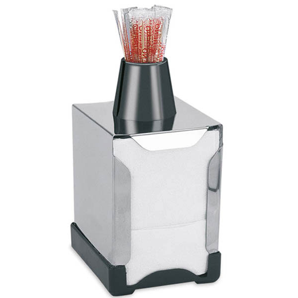 Servilletero de Acero inoxidable con palillero para servilletas Miniservis, ideal para optimizar el tiempo de montaje de las mesas en su establecimiento.