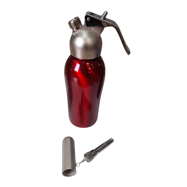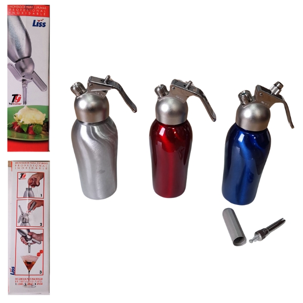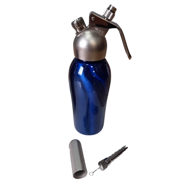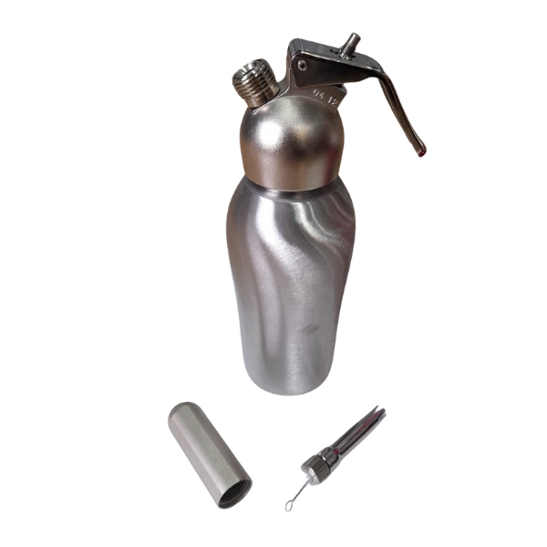 Fabricado en cuerpo metálico ligero y resistente, con cabezal de aluminio y mecanismo de liberación de alta precisión. Permite montar nata o elaborar espumas frías con resultados uniformes.