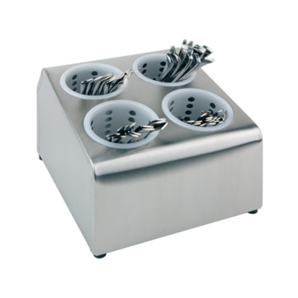 – Cubertero en acero inoxidable con 4 huecos para vasos escurridores.