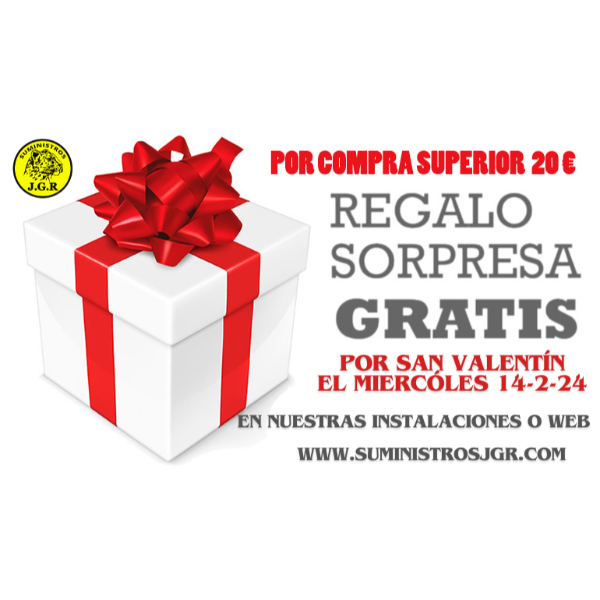 Consigue tu regalo sorpresa por San Valentín el día Miércoles 14 de Febrero de 2.024 por la compra superior de 20 €, ¡ te obsequiaremos con un regalo sorpresa ! Puedes obtener tu regalo tan visitando nuestras instalaciones como en nuestro apartado de tienda online de nuestra web www.suministrosjgr.com