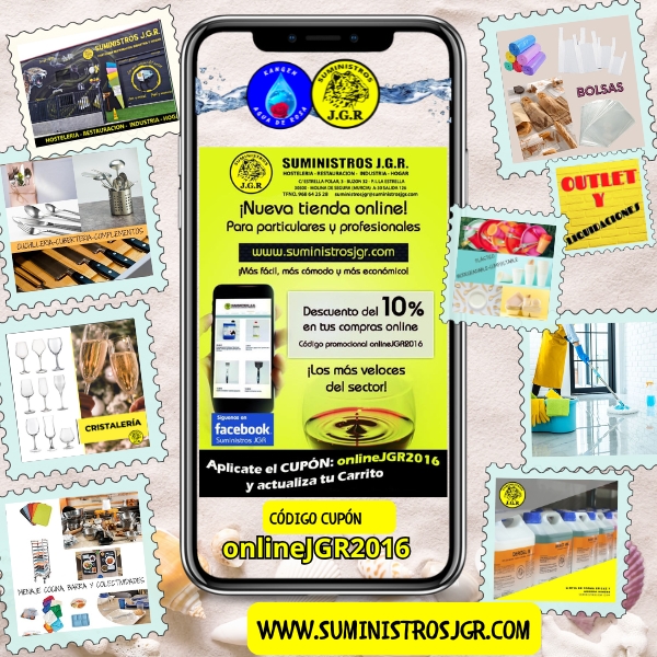 ¡Agosto sigue y las ofertas no se van de vacaciones! En Suministros J.G.R. seguimos contigo para que puedas hacer tus compras desde donde estés… Entra ya a www.suministrosjgr.com y disfruta de: 10% de DESCUENTO con el cupón: onlineJGR2016 Categorías para todos los gustos: menaje, cristalería, hostelería, químicos, maquinaria, bolsas, limpieza, etc. PORTES GRATIS si eliges […]